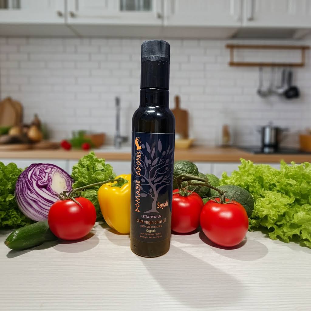 A rare olive oil with high frutiness and a lot of great sensation dominated be red fruit and spicy sensation of mint and basil. It seems like sweets profile with vanilla and flower aromas. Extremely complex and persistent.